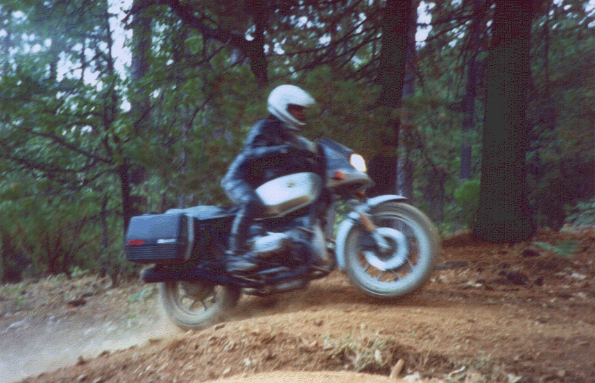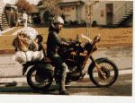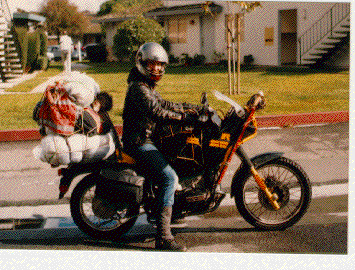 Hi, This is me ( Scott Brogley aka sbrogii@cisco.com ) about to depart from my home in the San Francisco Bay area for Estrella Mountain Park, in southern Arizona. The trip is about 740mi ( 1190km ) one way. This was for Presidents day weekend in 1994 ( 2/17/94 ). Scott '92 BMW R100GS