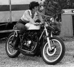 1973 RICKMAN TRIDENT Various snapshots of my Rickman-Trident, Serial #1029r. I no longer have the bike. It is in New Mexico somewhere. The tank is aluminum. You know the rest, engine number matches frame, Rickman forks, Borianni (sp) rims, Rita electronic ignition, German electronic tach, temporary headlight... <engine blueprinted by Mitch Klemph, 1979> Fibreglass? Where is all that neat Metisse stuff? *sigh*, I had the glasswork, fenders, lights, etc, stored in my brother's basement along with my Yamaha TD250 gp road racer. The Rickman and Yamaha body parts were painted the same colors. Someone wanted to buy the gp bike. I asked my brother to take care of it. The buyer gets the the Yamaha and gets away with all the Metisse parts, too. I didn't discover it for months. The lady is Sharon Smith. john stafford The images were scanned directly from 35mm B&W negatives, not prints.