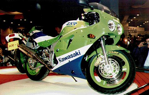 ZXR750.jpg 109550 Short: 768x512 24bit JPEG: Kawasaki ZXR750 on stand at '86 Bike Show Long: Excellent quality Photo CD base image, disgusting green ZXR on the Kawasaki turntable. 4xBase (1536x1024) and 16xBase (3072x2048) images available on request. (adam@ifeng.demon.co.uk, adam@isysg.com)