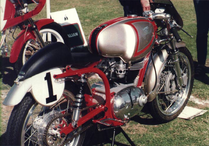 Parilla is another lightweight Italian marque that was famous for competition in the '50s and '60s. Very pretty, delicate, oh so italian looking machines with an interesting, high cam pushrod motor. Scan by Godfrey DiGiorgi <ramarren@apple.com>.