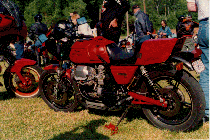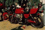 Owner: "Fast" Mike LaMartina, Rochester, NY. Started life as a Le Mans III, now features heavily breathed on engine featuring Raceco head work, cam, increased displacement, Marazzochi, and WP shocks. Note one-off wrapped exhaust pipe traveling under sump exiting on far side of engine and braced Le Mans IV swing arm. An extremely detailed bike that manages to balance the original stock design with hot-rod style.