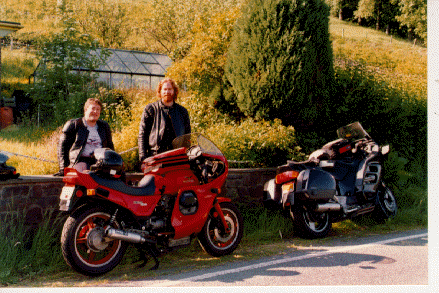 Americans abroad havin' fun: Ralph Merwin (the bearded gentleman) and William Kuskin (the guy perched up on the wall looking like he's had one two many pub dinners) bump into one another speeding through Snowdonia National Park. Actually, Merwin sped past Kuskin, but he was nice enough to stop.