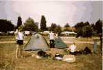 Alex, myself, and Chris (left to right) behind the bikes at a campground near Saarbruecken. Imagine the faces of the camping public when we arrived. :-)))