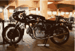 Thorsten wrenching on his Ducati 750 SS. The pavillion in the background was handy for storing stuff inside.