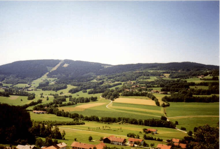 The same castle as in "burg", only looking the other direction. The cleared stripe on the mountain at the left is a ski slope.
