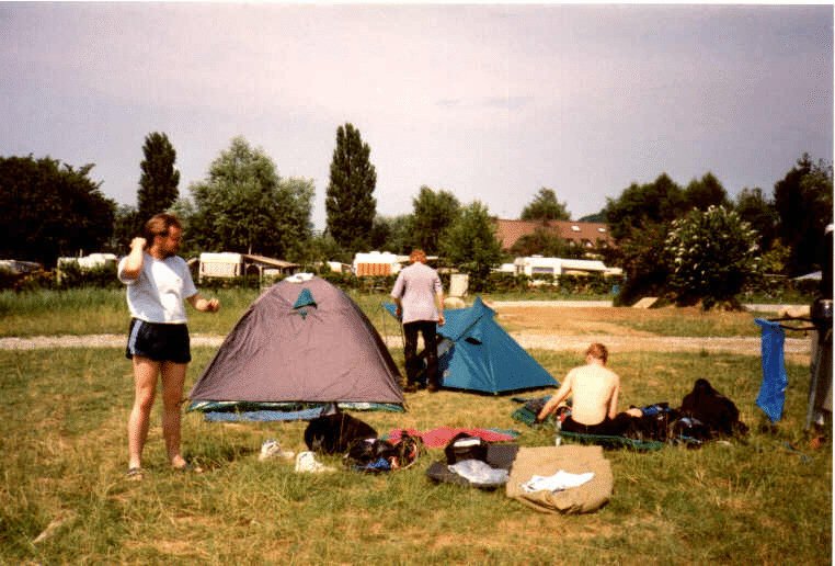 Left to right: Me, Alex, and Chris setting up the tents and getting ready for some cooling off in the pool. The place is Freiburg, in southeastern Germany near the Black Forest where we visited a friend.