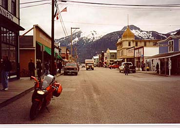 Before I conk out though I'm still telling myself that I might make it as far as Watson Lake tomorrow. I tell myself I'll go to Skagway tomorrow, come back, take a nap then load the bike and head out. Looking at it now, I'm amazed at how convincingly I can bullshit myself. I sleep. I wake at 8:30. I sleep. I wake at 9:30. I sleep. I wake at 10:30. I sleep. I wake at 11:30. OK that's a good 6 hours. I'll try to get up. I still have recollections from the night before and I had such fun, I thought I'd better make some notes for my trip report. About 12:00 one of the boys from Ottawa calls to see if I'm still alive and if I want to have some breakfast. I'm all over that. I'm so hungry I could eat a bowl of lard with a hair in it as a good friend of mine always says. I really need something to absorb the tremendous volume of stomach acids. We meet downstairs. They had been talking about awarding me a Canadian (beer) shirt. Leny comes in and gives me one of his. I promise I will wear it. I'm relieved to find that they are in as much pain as I am. I make the statement, "It doesn't seem like we drank that much beer, I can't understand all the suffering today"? Jason responds with words to the effect of "I think we had 5 or 6 pictures plus the stuff in front of the hotel". Still I'm thinking, that shouldn't mess four adults up, not that much. It wasn't until a couple of days later heading back south that it dawns on me. The alcohol content of the beer up here is a lot greater that the 3 percent piss water I'm used to down south of the border. Well that explains it…