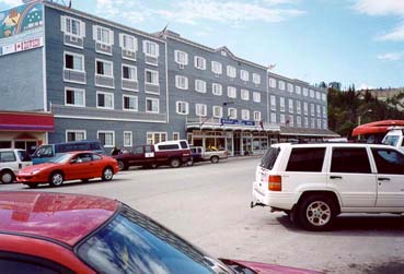 While they check in, I hang out in the lobby asking about the route over to Skagway. This results in drawing another couple into the conversation with the desk clerk. The girl comes up and introduces herself as Dorthy. Her boyfriend never did introduce himself. Anyway, she was a local and just full of information. She grabs some info on Whitehorse and Skagway off of a brochere stand and starts giving me the rundown on everything to do in Whitehorse and the surrounding area. She is just a veritable encylopedia of information. The info is coming at me so fast I can't assimilate it all. I just smile and think to myself, this is very cool, the first person I meet and have a chance to talk to and they turn out to be someone who is proud of their town and loves living there. I've found that to be uncommon in the past for rural areas, especially where young women are concerned as they often want to get the hell out. Dorthy is a one person PR machine for the town of Whitehorse. I thank her and step outside to smoke a cigarette I'd bummed earlier.